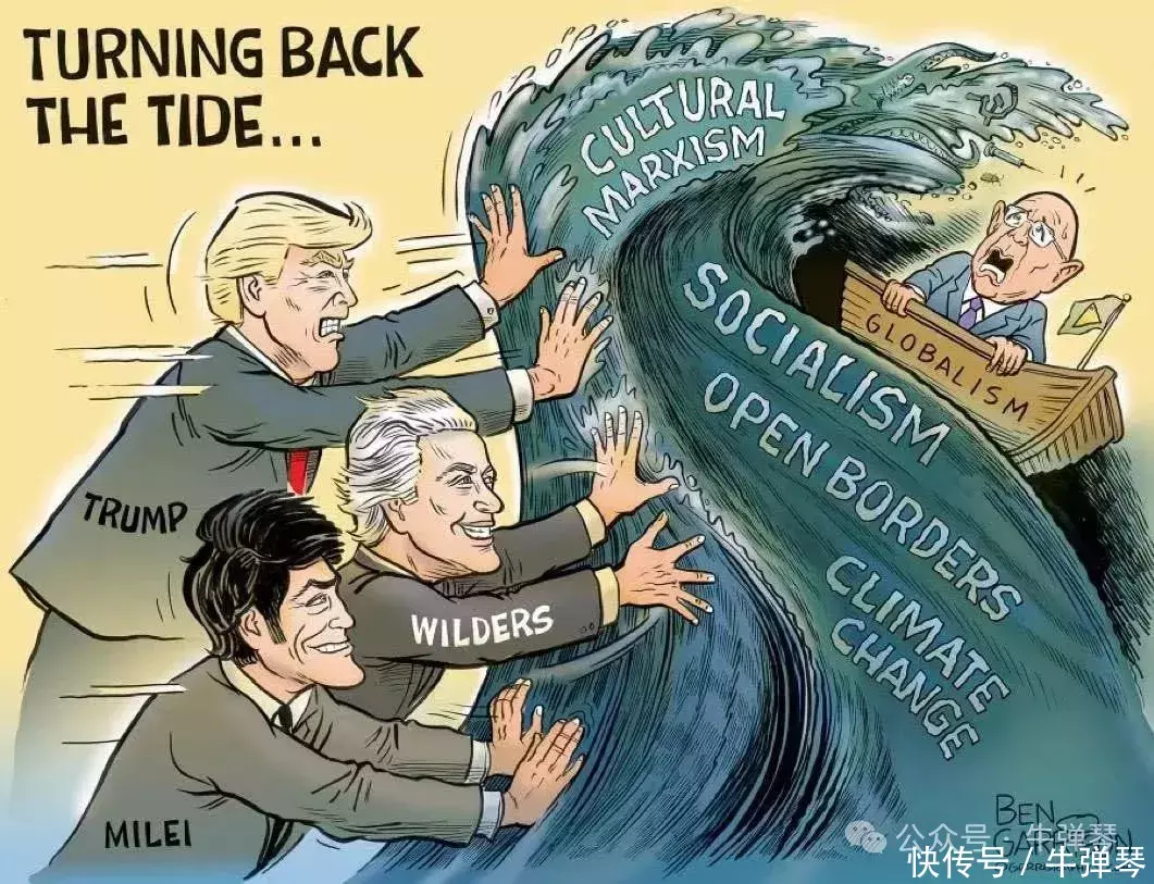你也别以为米莱对特朗普专门见。他与特朗普是再会恨晚,归正他当选后,去过好意思国屡次,见了特朗普,见了马斯克,但即是没见拜登。 还有一张漫画,米莱最近也转发了好屡次。那即是他和特朗普,还有荷兰的维尔德斯(亦然极右翼),一谈坚贞不屈,抵拒“社会想法、边境怒放、民众化、情势变化”…… 什么民众变暖,什么越来越热,特朗普不信,米莱也不信。